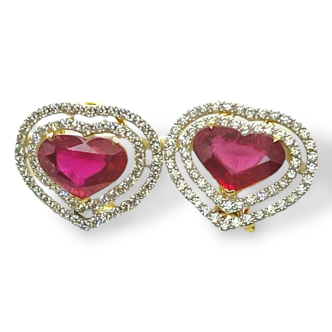 Orecchini in oro kt18 con diamanti taglio brillante ct1,79 e rubini trattati ct9,19