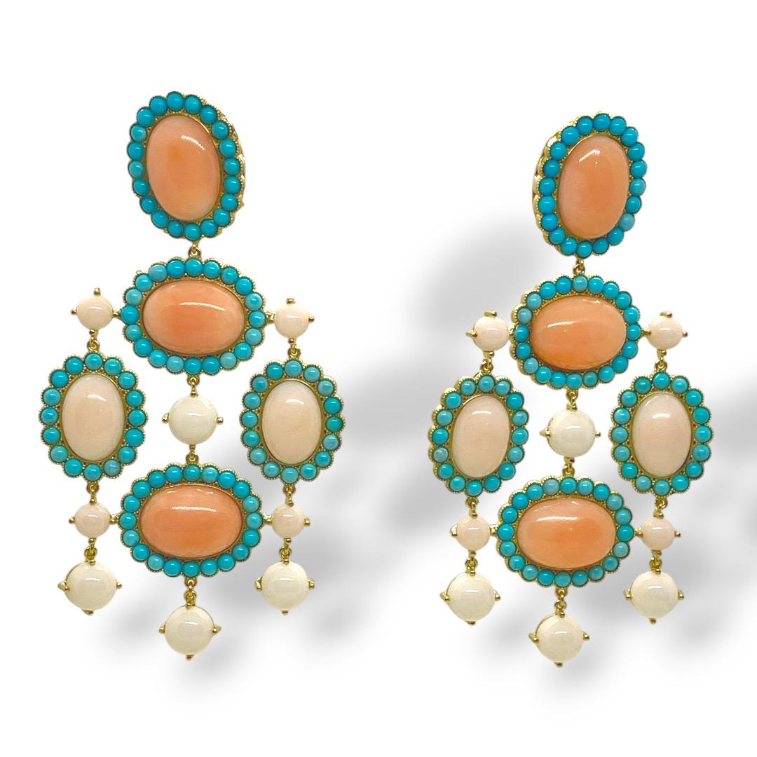Orecchini in oro kt18 con corallo e turchese