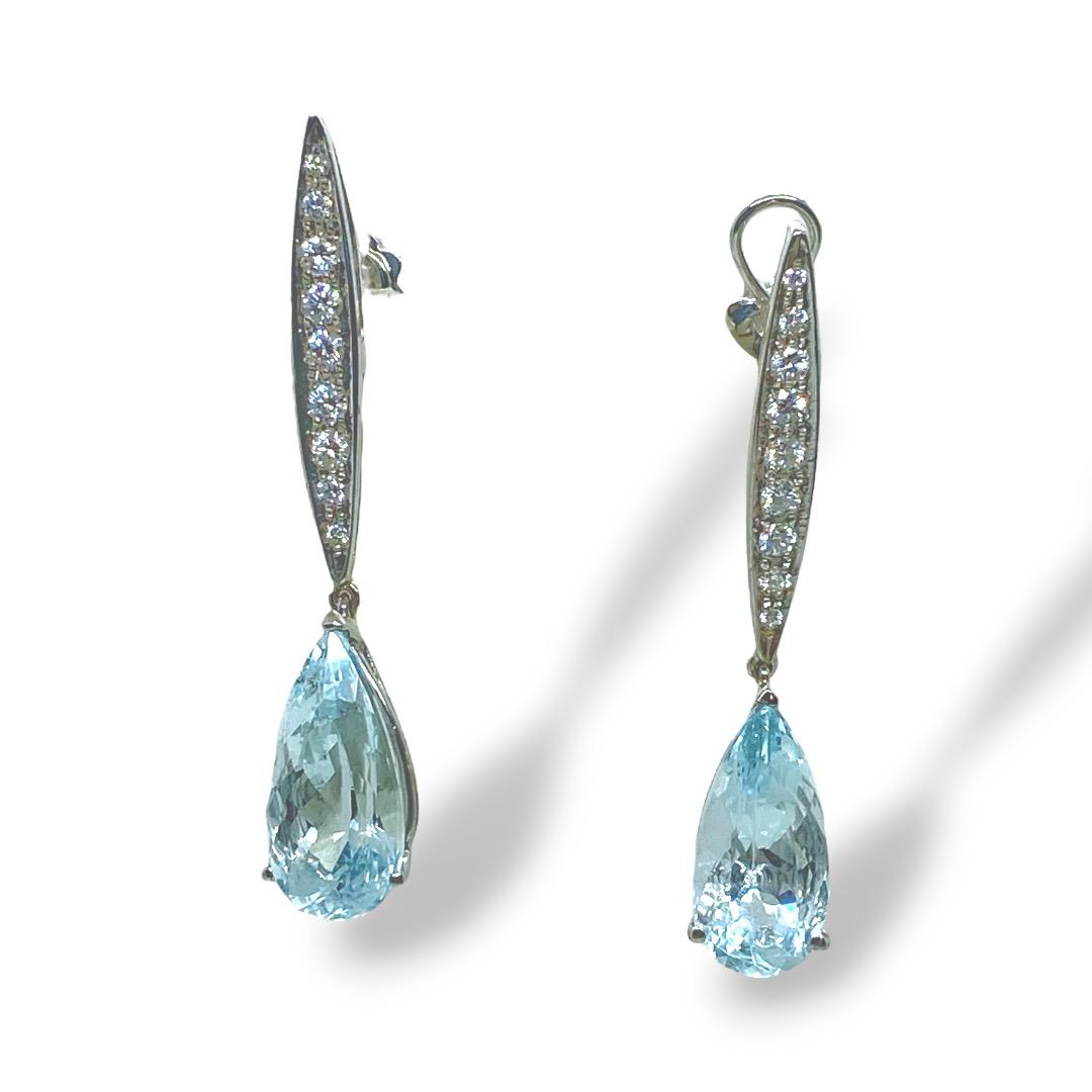 Orecchini in oro kt18 con diamanti taglio brillante ct0,60 e acquamarine ct12,50