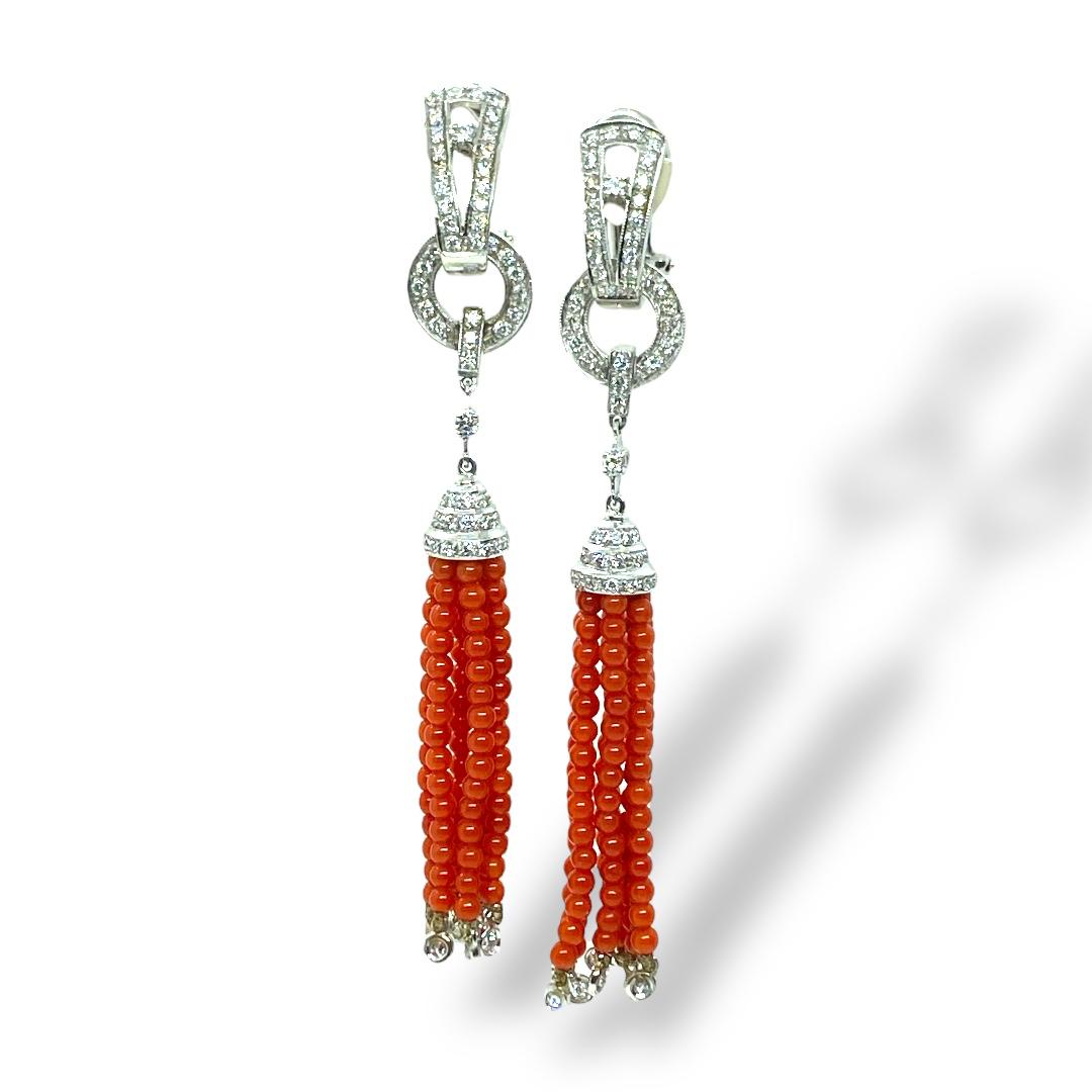 Orecchini in oro kt18 con diamanti taglio brillante ct1,71 F VS e corallo 4,50gr